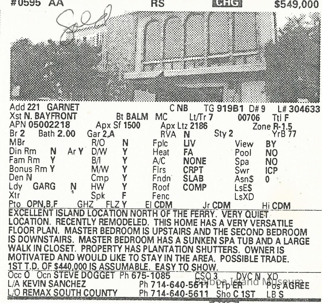 An advertisement for the home on 221 Garnet. This is the previous house that was on the lot. It was remodelled slightly by 2012.Lexicon