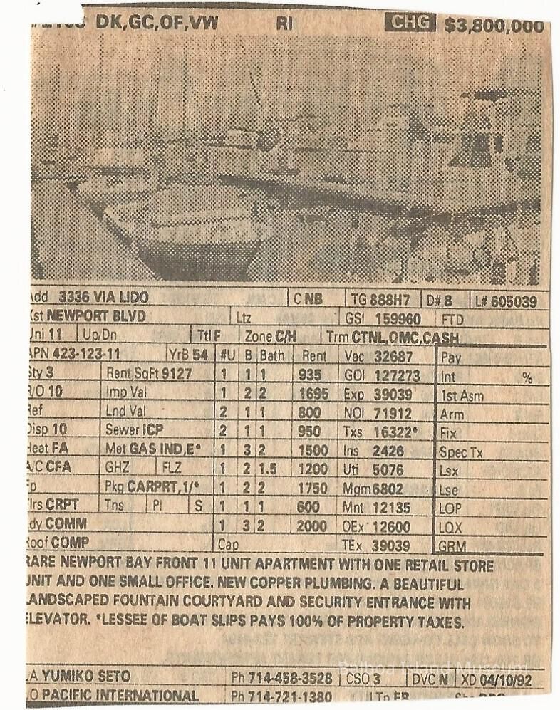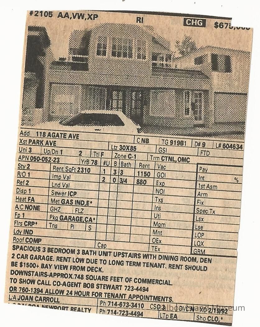 A real estate advertisement for 118 Agate Avenue and 3336 Via Lido.Lexicon