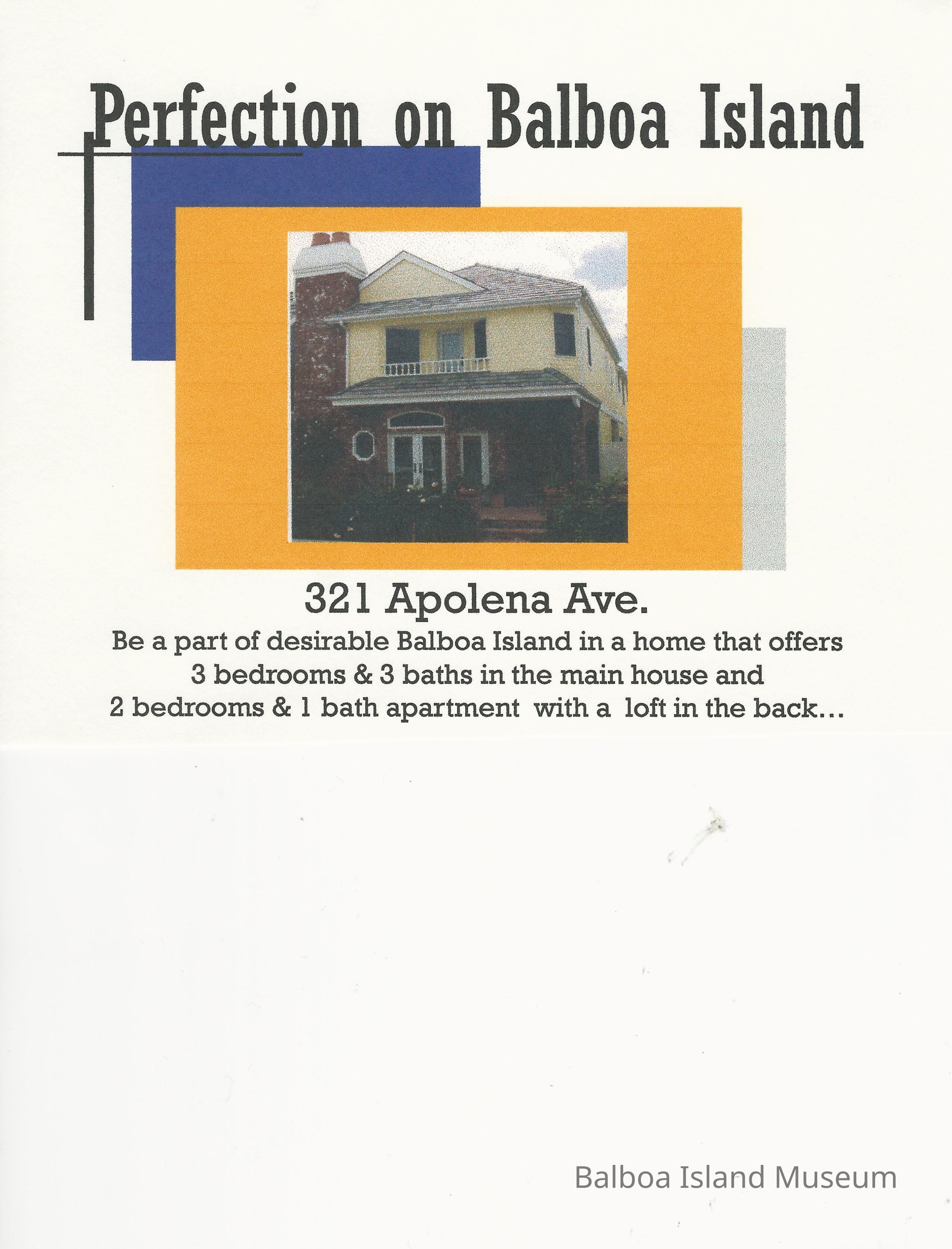 A flyer for the current house at 321 Apolena Avenue.Lexicon