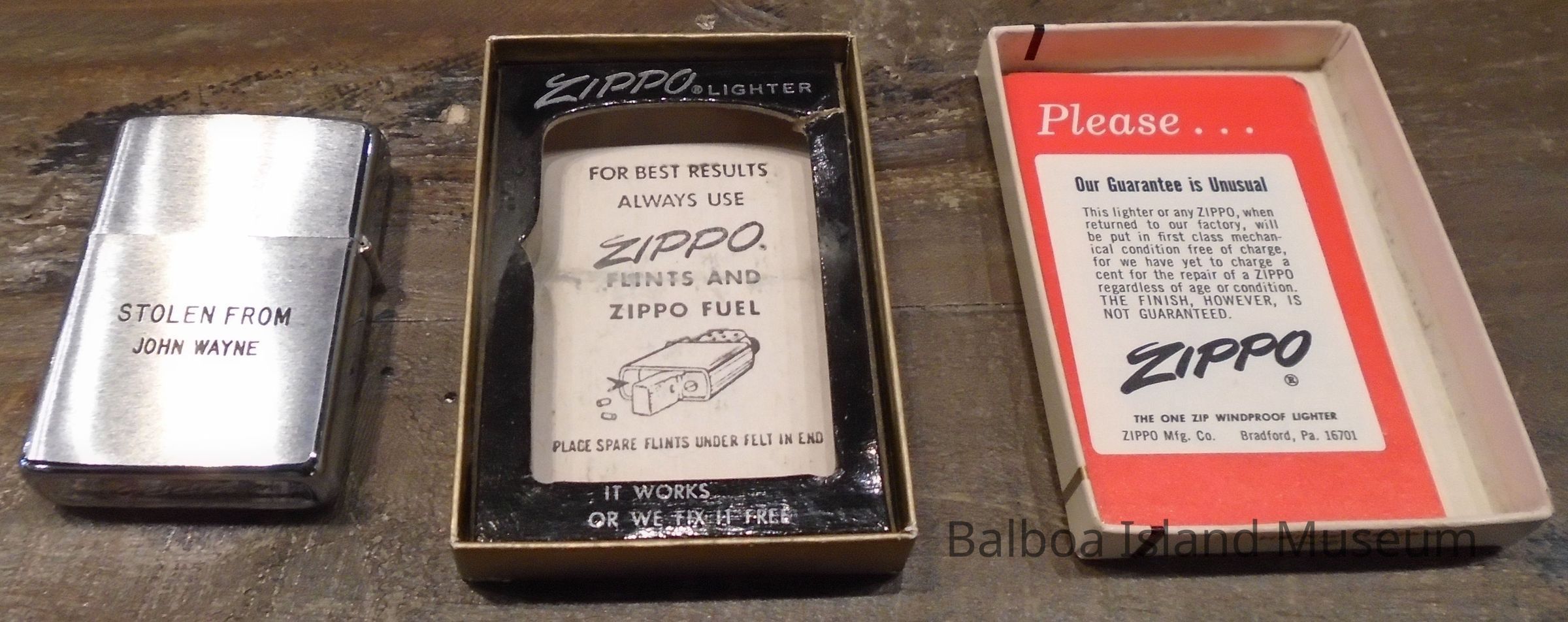 Silver Zippo lighter. "Stolen From John Wayne" written on it in black text. From John Wayne's yacht, the Wild Goose.Collection