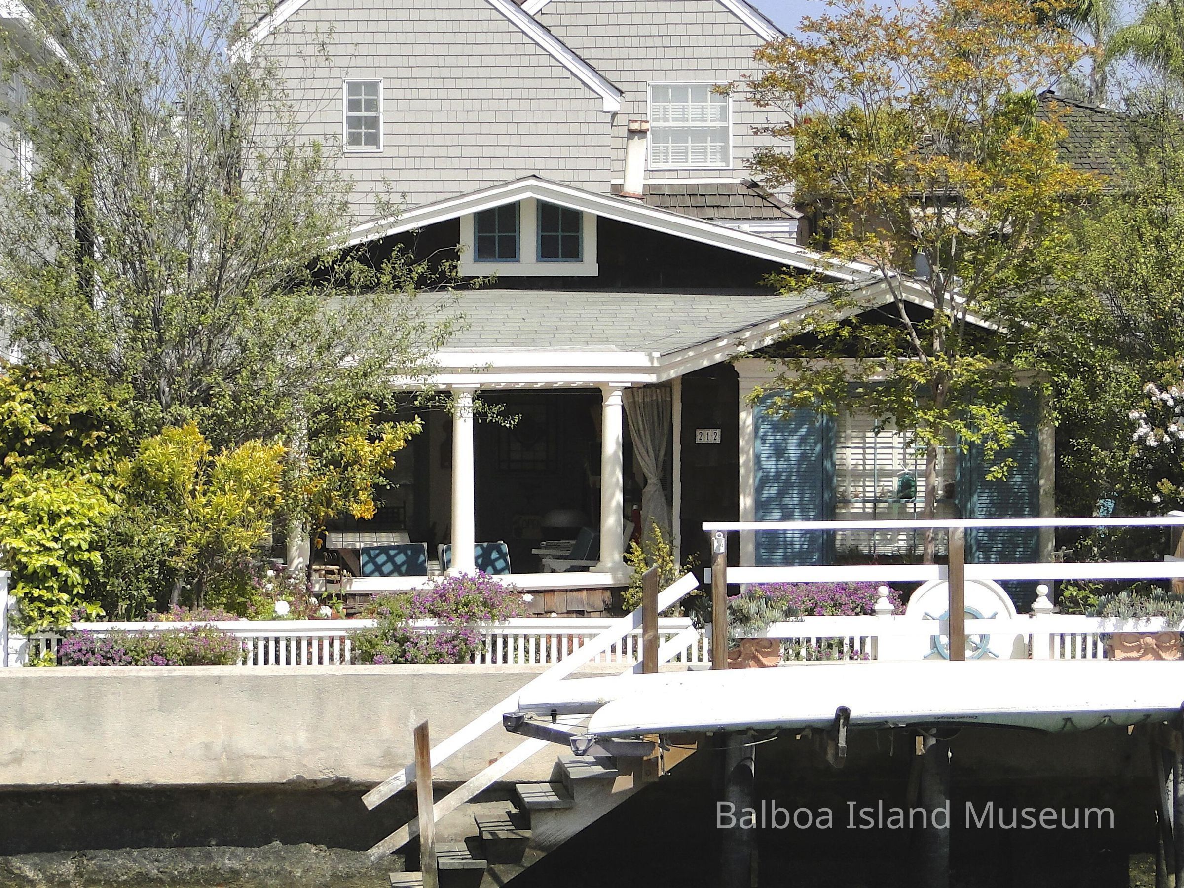 Color photo in front of home at 212 Grand Canal.Made/Created