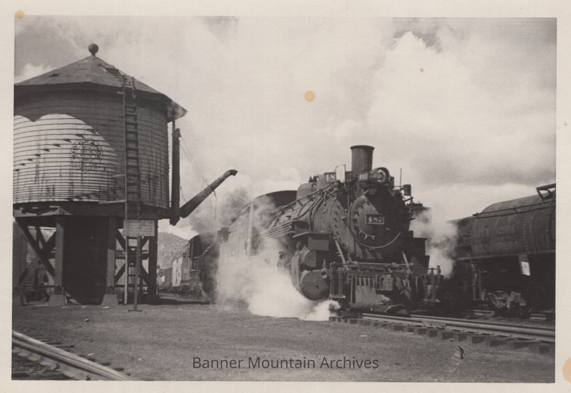 D&RG double-header at a water tower.