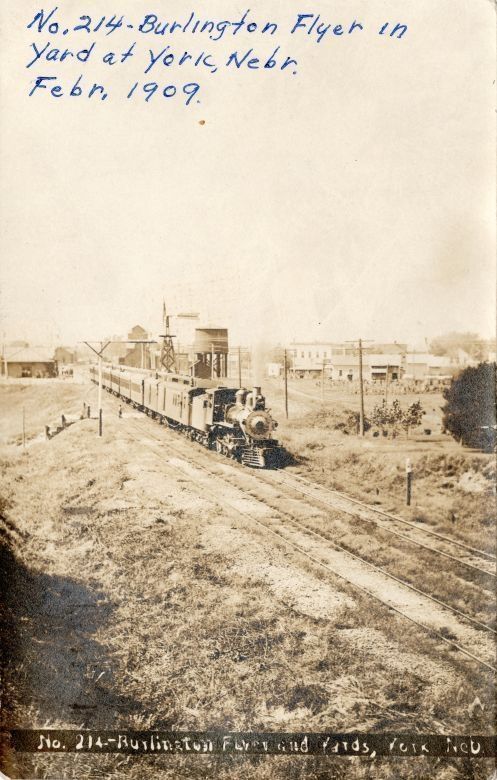Postcard with image of the Burlington Flyer at York, Nebraska, February 1909.