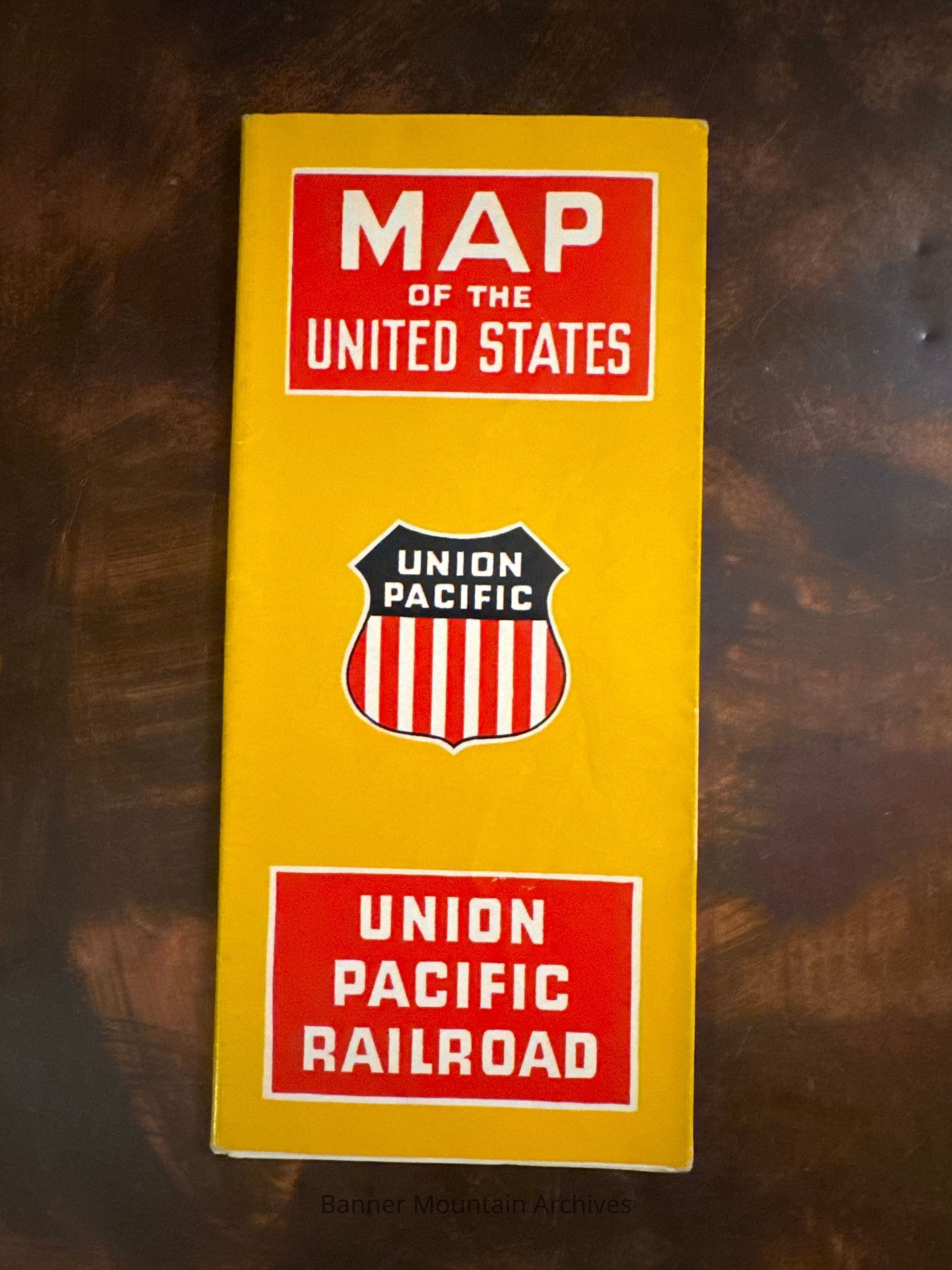 Map of the United States showing the Union Pacific Railroad and its connections as well as information about passenger train amenities, 1950.