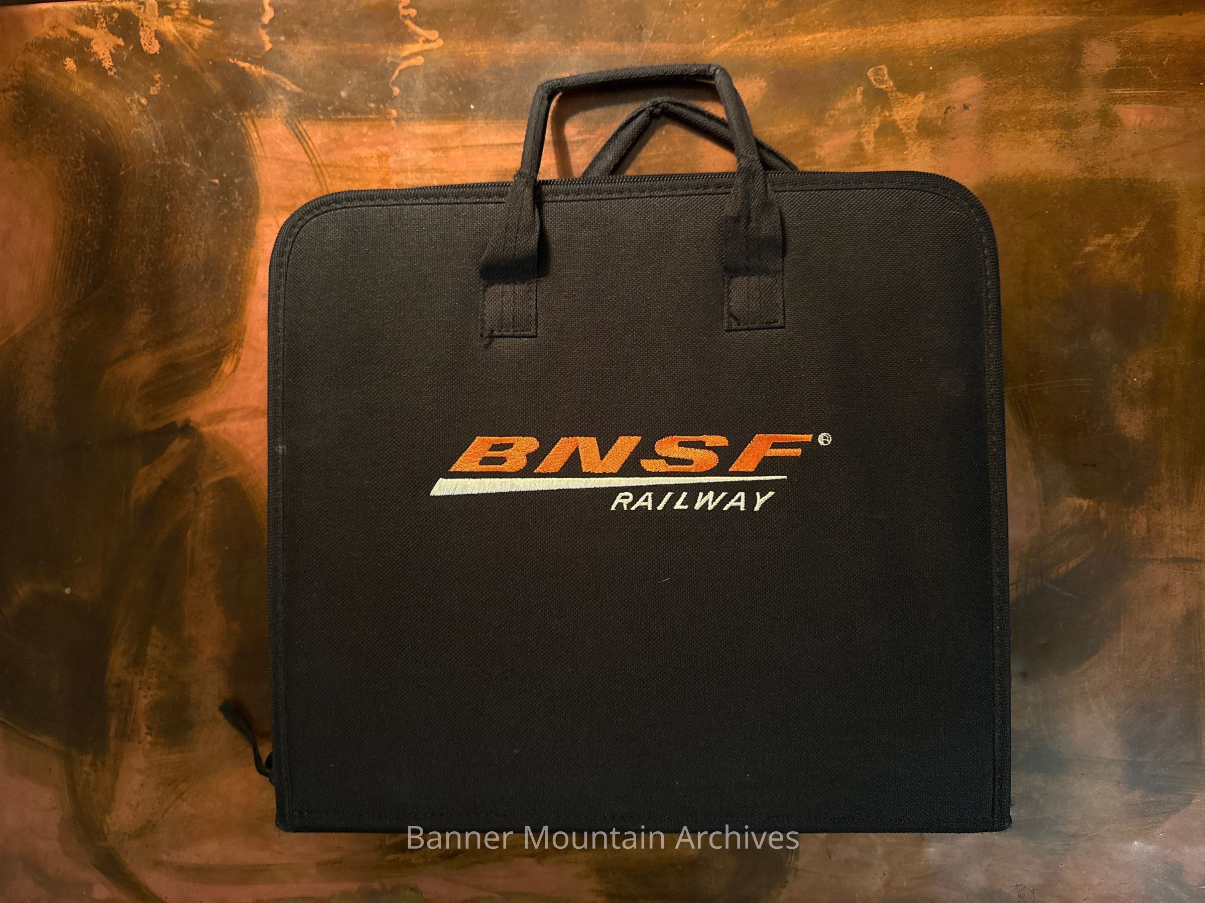 BNSF binder case containing the general rules, notes, etc., used by Engineer Jared Kelly, Casper, 2015.Made/Created