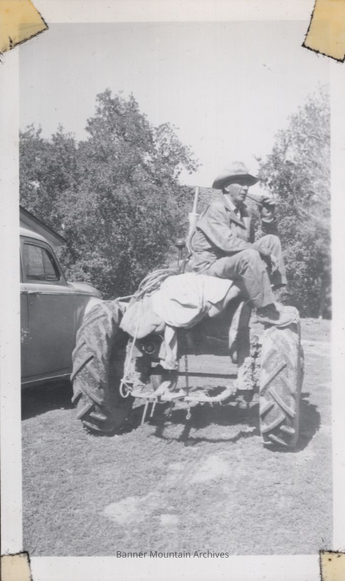 Marion "Mike" McCleary sitting on a tractor, circa 1940.