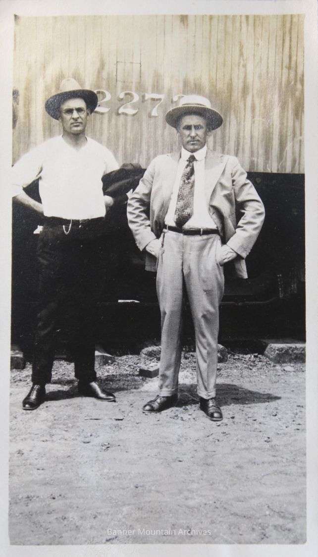 Unknown men next to a passenger car, circa 1907.Photograph Details