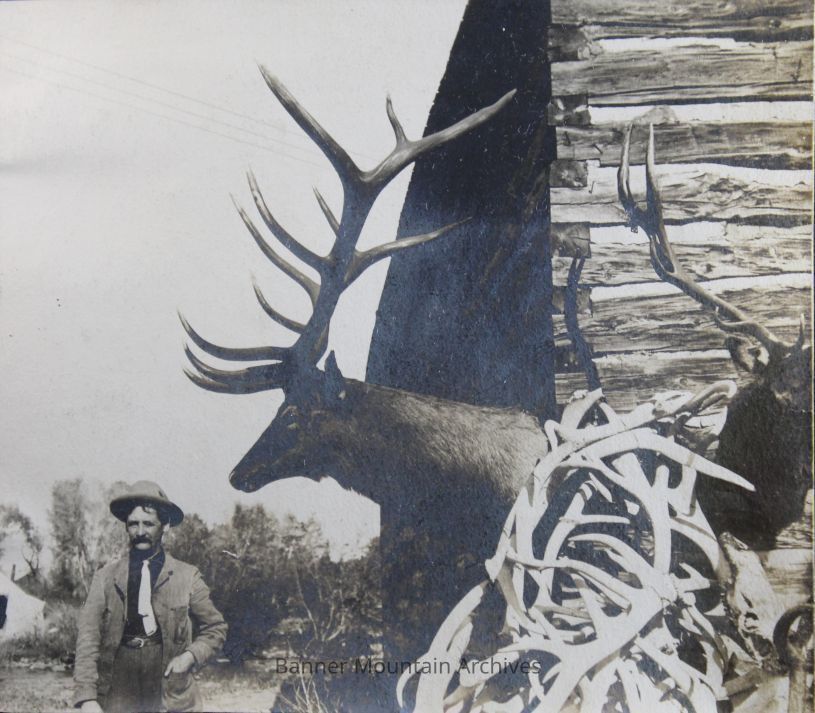 Elk mounted at Lander, WY, circa 1907.Photograph Details