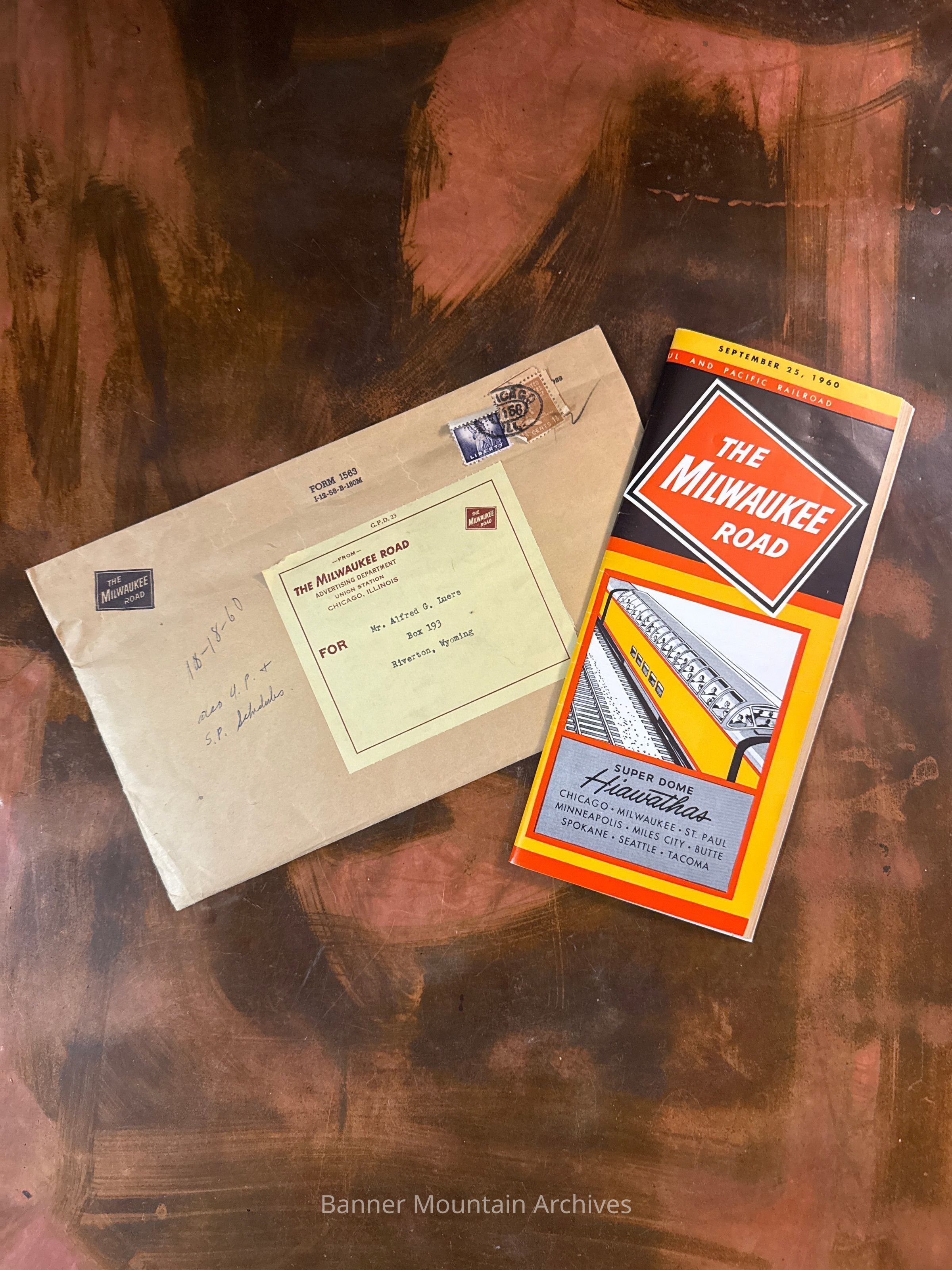 Milwaukee Road envelope sent to Alfred Luers of Riverton, WY, received October 18, 1960.Creator