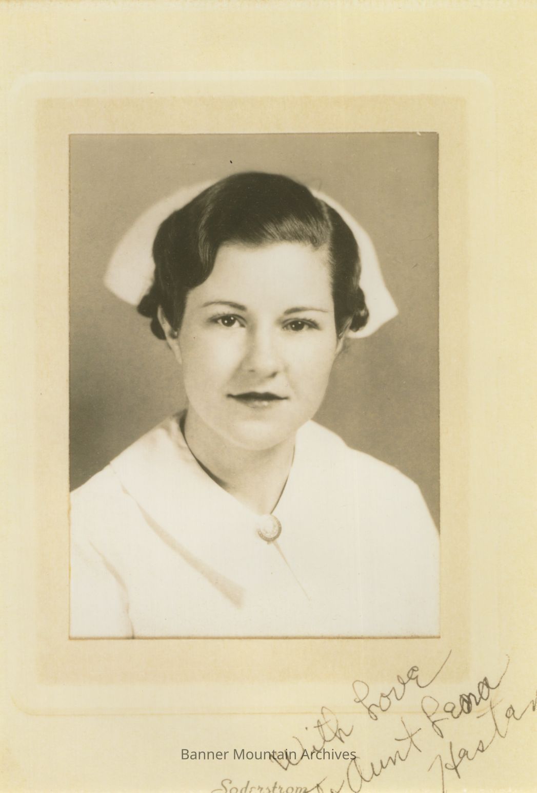Portrait of Mary Hester Lathrop in a nurse's uniform given to her aunt Lena (Brooks) McCleary, Casper, circa 1930s.Photograph Details