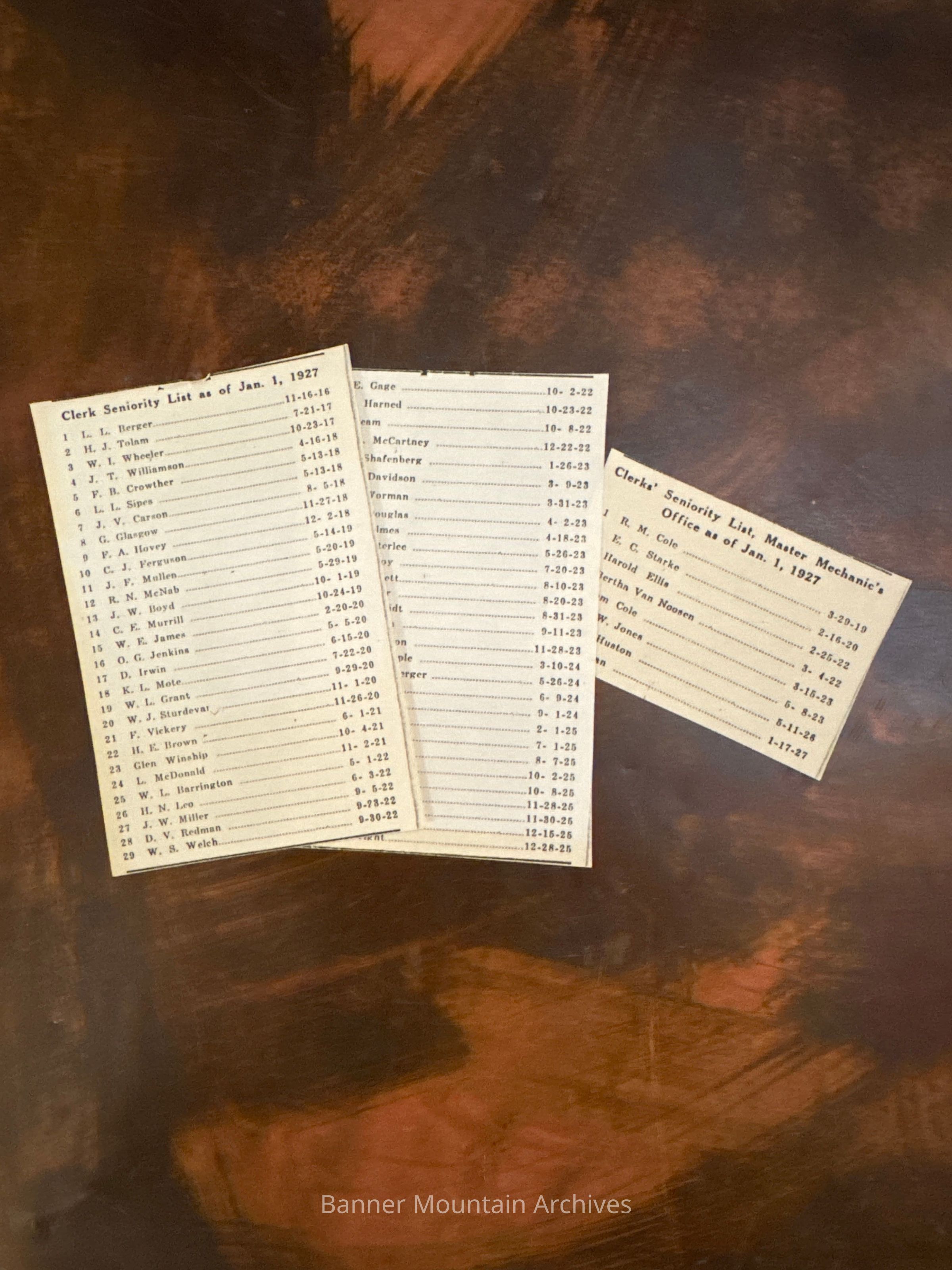 Seniority list of the Master Mechanic’s office clerks as of January 1, 1927Creator