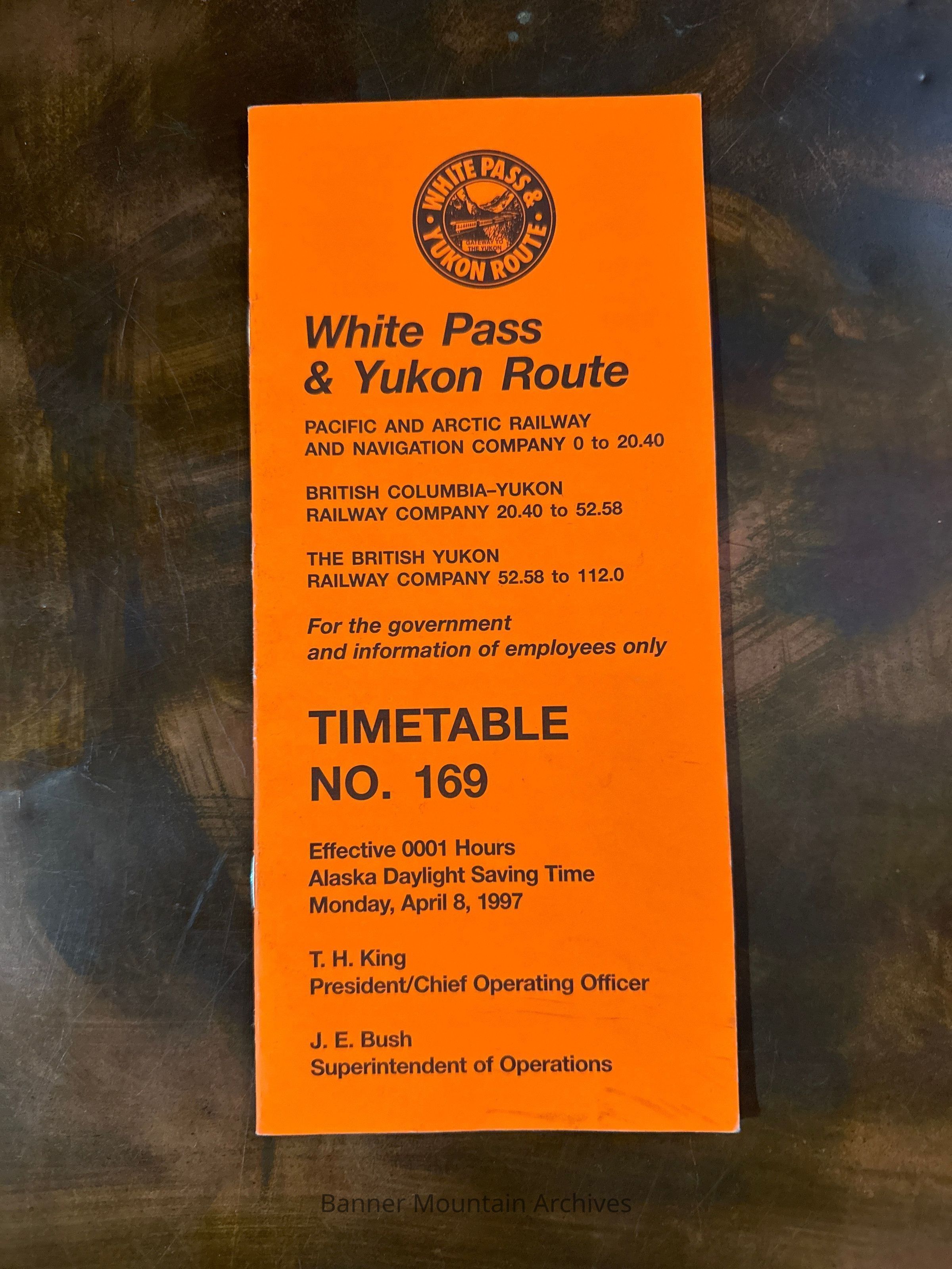 White Pass & Yukon Route timetable no. 169, April 8, 1997.