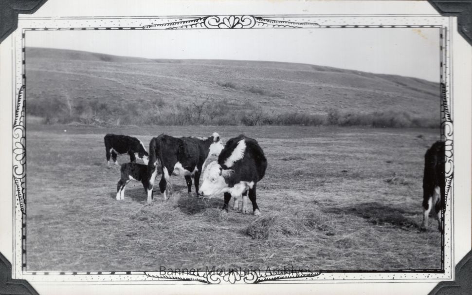 Banner Ranch Hereford cows on the feedline, circa 1930s.Photograph Details