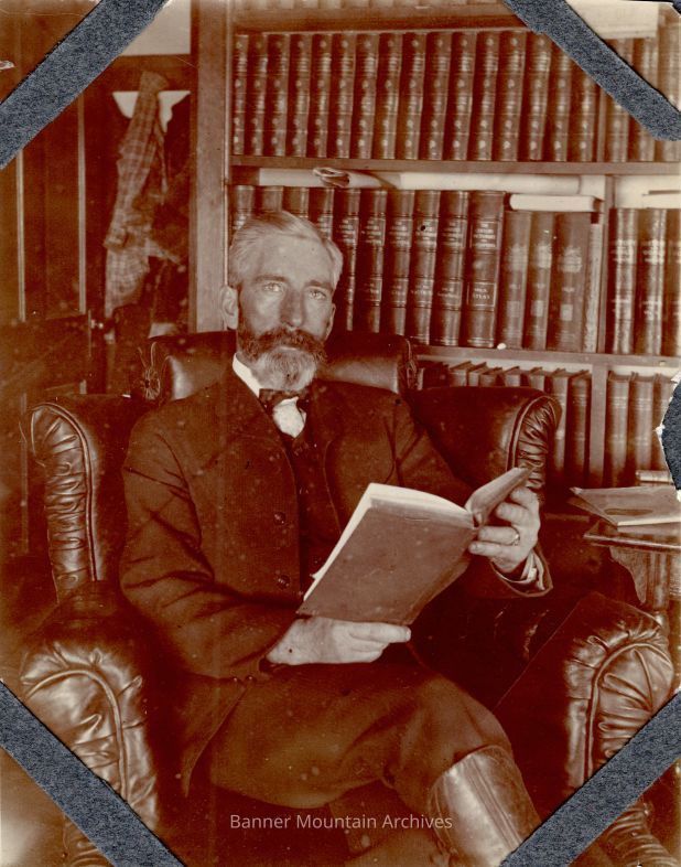 Bryant B. Brooks in a library, unknown location but possibly the V-V, circa 1900s. "Papa in his library."