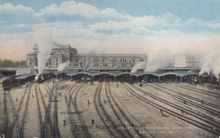 Postcard image the Kansas City Union Station train sheds, Kansas City, Missouri.