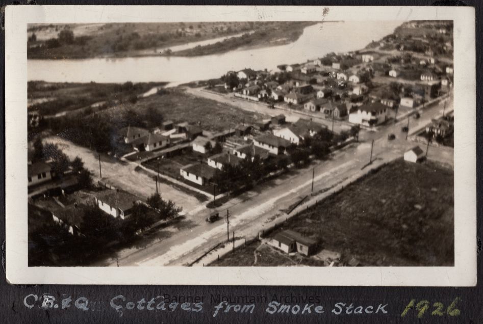 Chicago, Burlington and Quincy Railroad company houses viewed from the power plant smokestack, 1926.Photograph Details