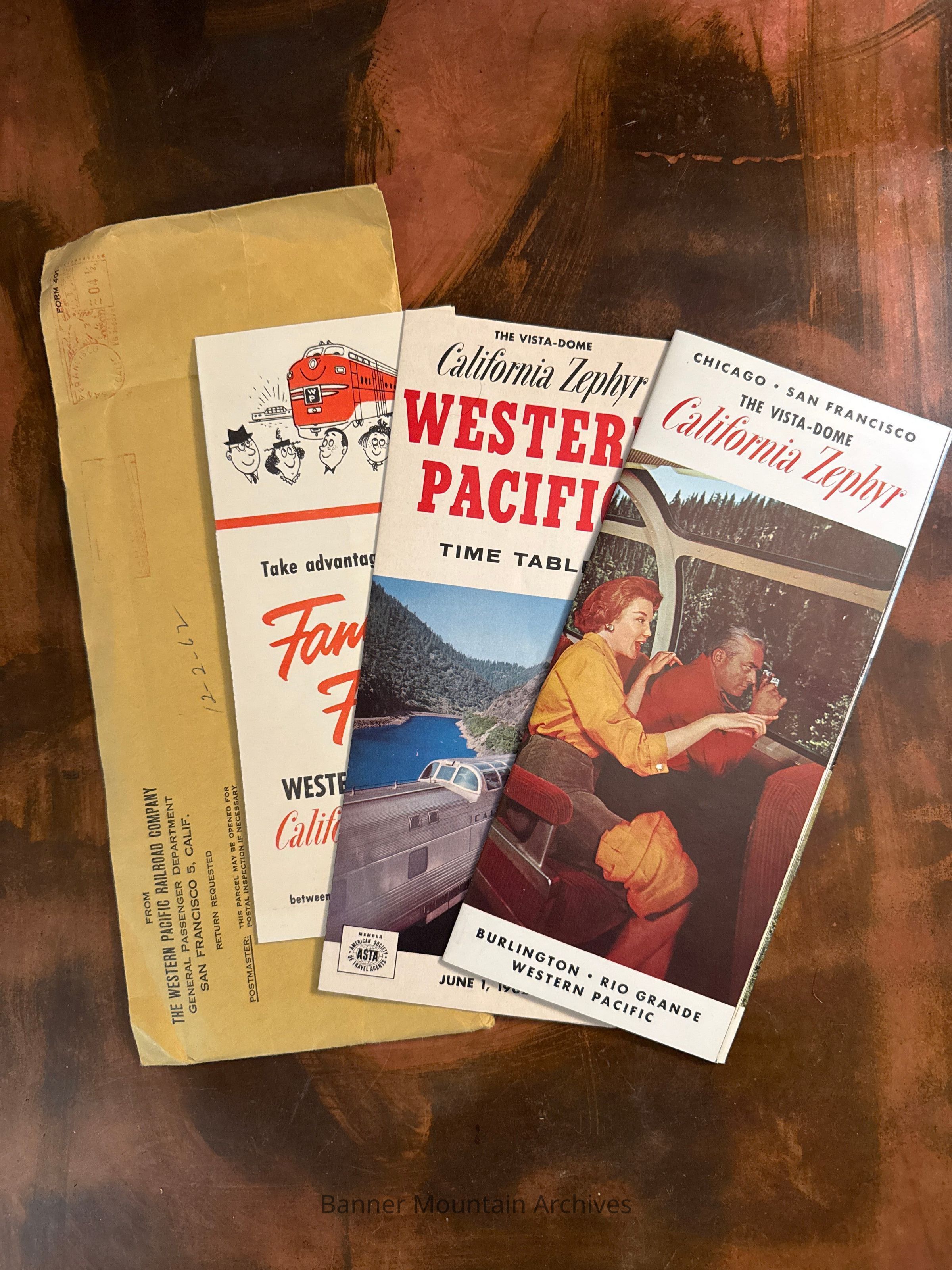 Western Pacific brochure on Family Fares on the streamliner California Zephyr, circa 1962.Creator