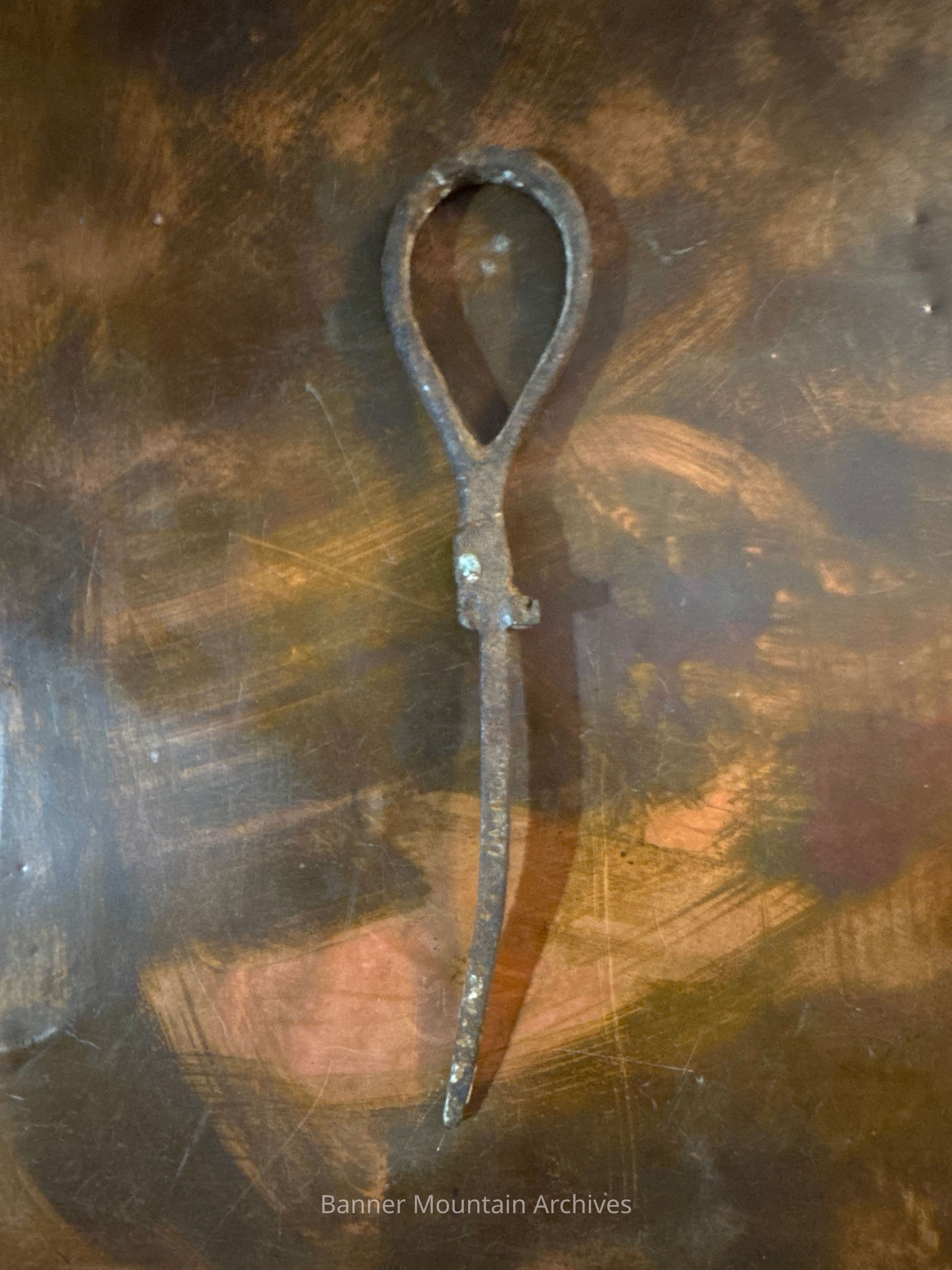 Sticking Tommy, missing hook and candle holder, bent spike, rusty, unknown date and manufacturer. Partial stamp possibly stating “California” on the side.