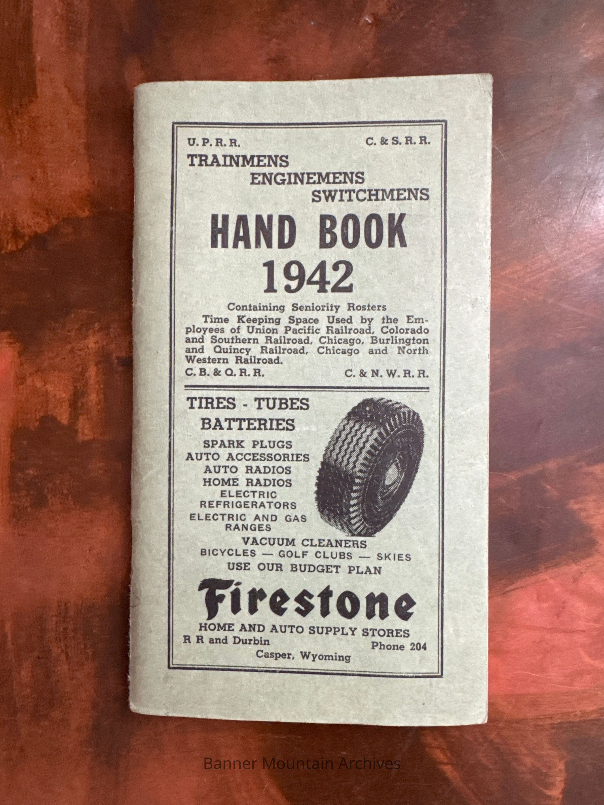 Trainmen’s, Enginemen’s and Switchmen’s handbook containing seniority rosters and time keeping space along with advertisements, 1942.Creator