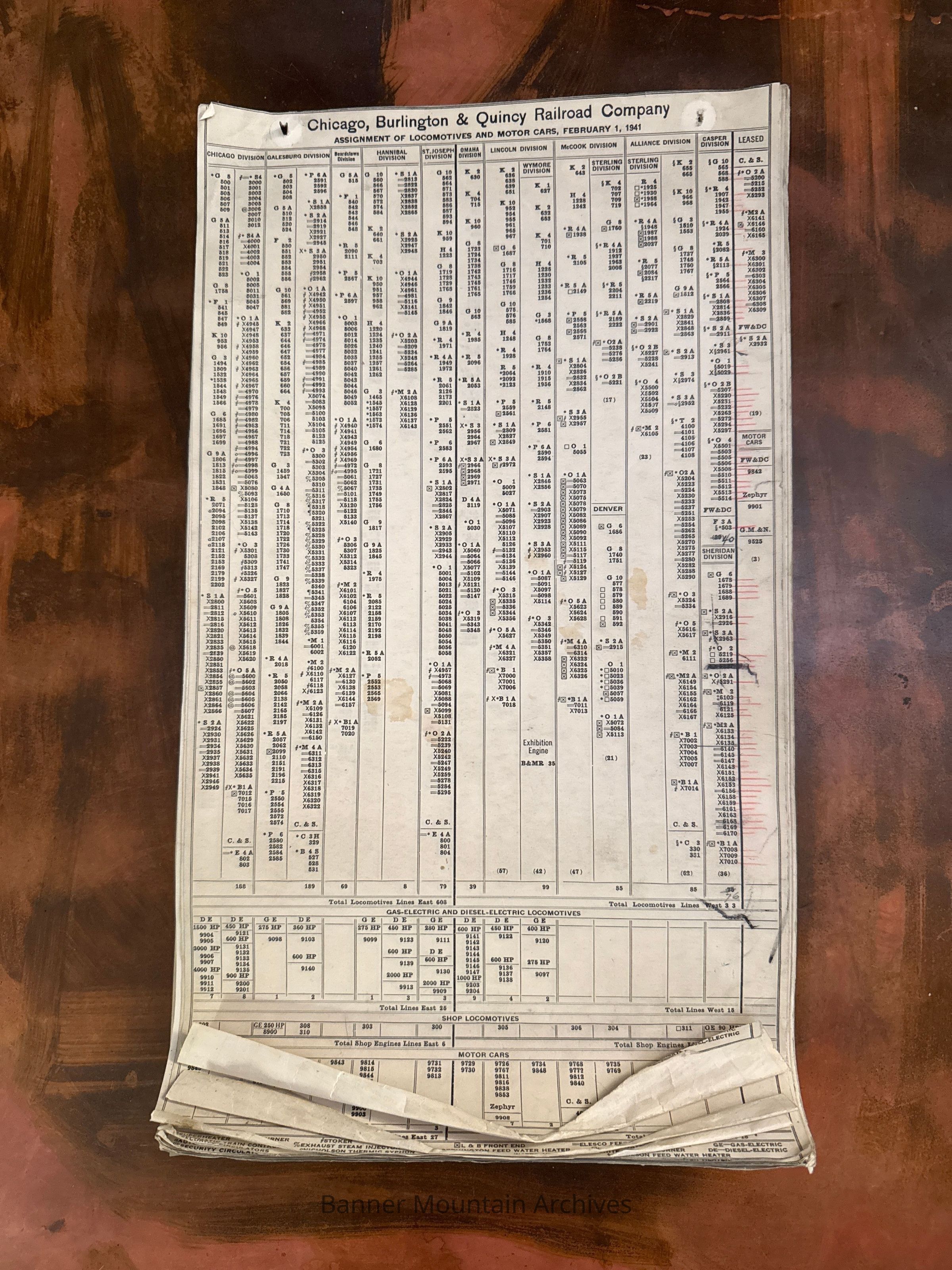 CB&Q Assignment of Locomotives and Motor CarsDescription