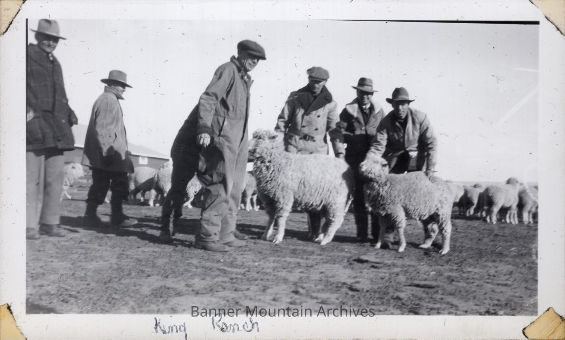 Men and sheep at the King Ranch, Laramie, WY, circa 1940s.Photograph Details