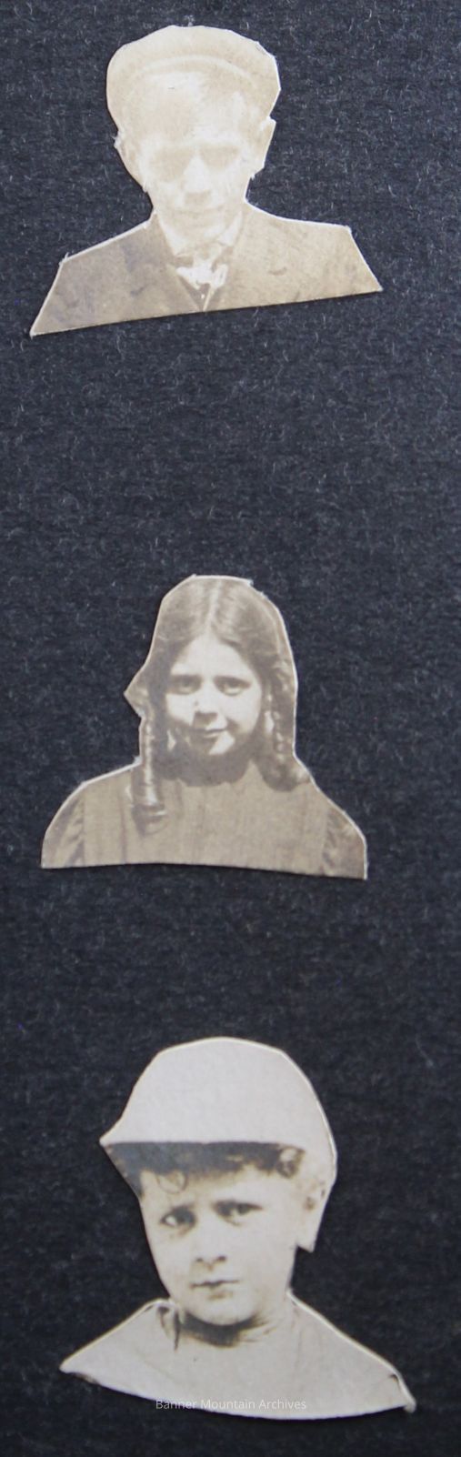 Three cut out portraits, circa 1908.