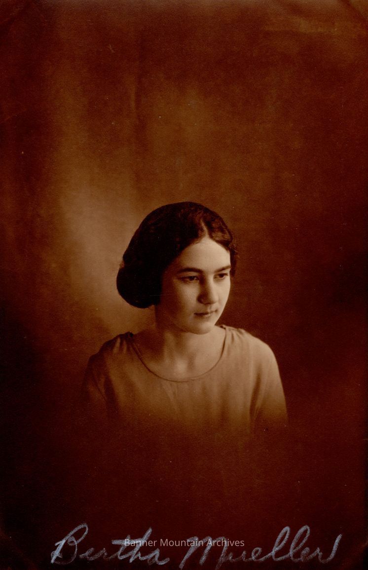 School portrait of Bertha Mueller, Elwood High School, Nebraska, 1922-23.Photograph Details