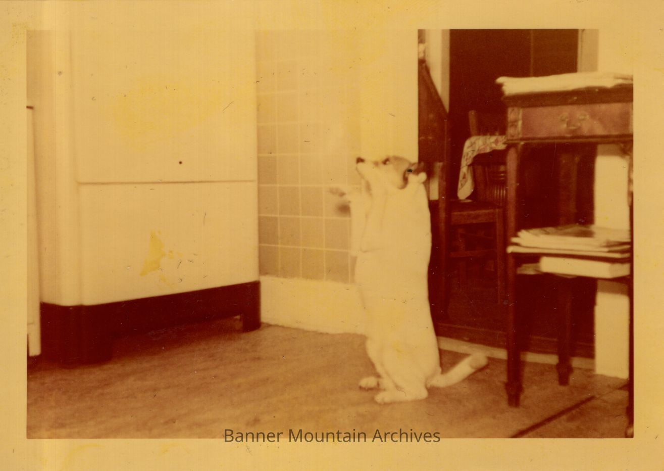 Dog in the kitchen of the original ranch house, circa 1950s.