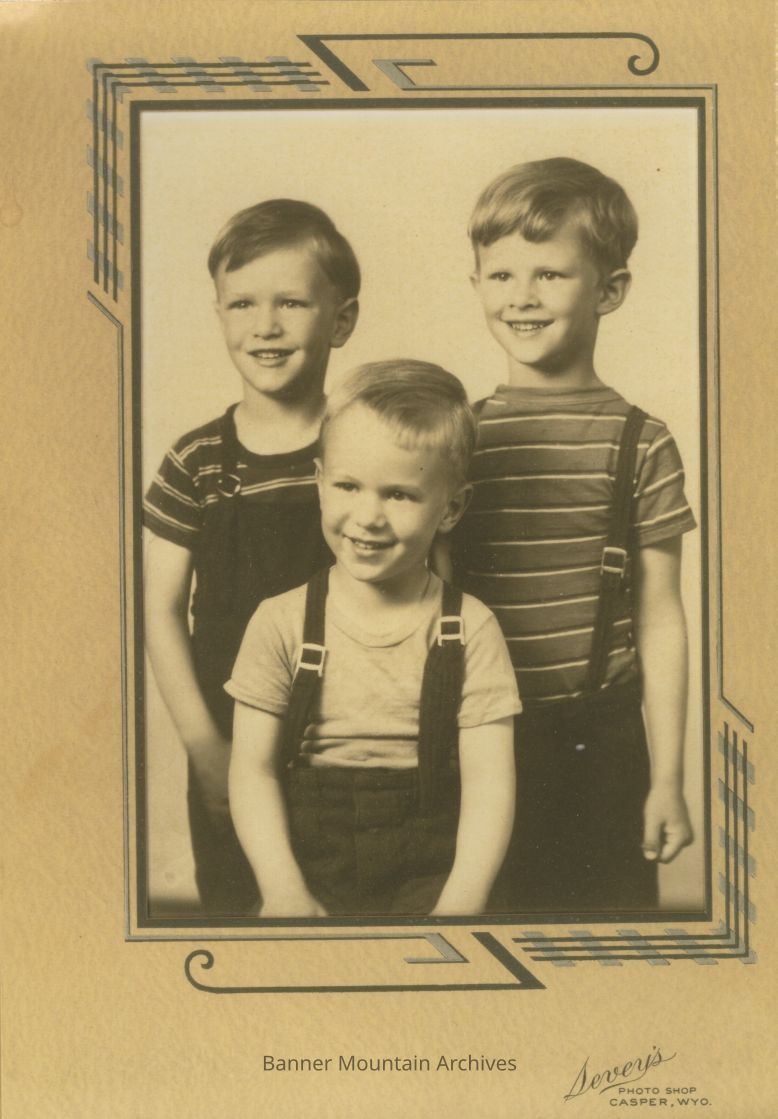 Portrait of Roland William, Robert Henry, and Everett Brooks McCrary, Casper, circa 1944.Photograph Details
