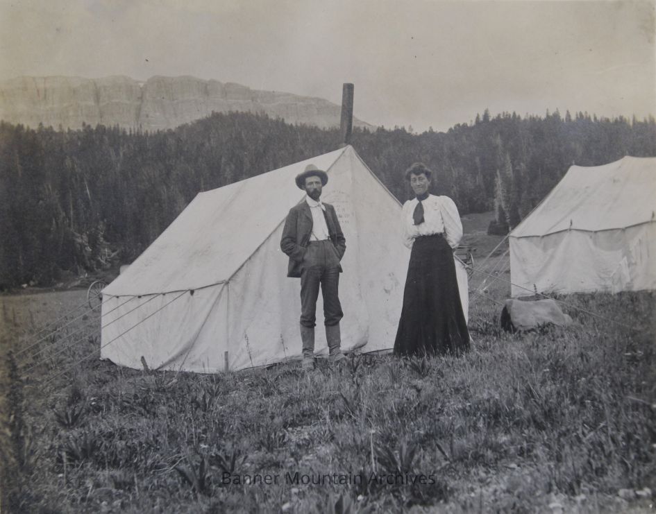 F.E. Stanley and wife with their tent at Brooks Lake, Wyoming, circa 1905.