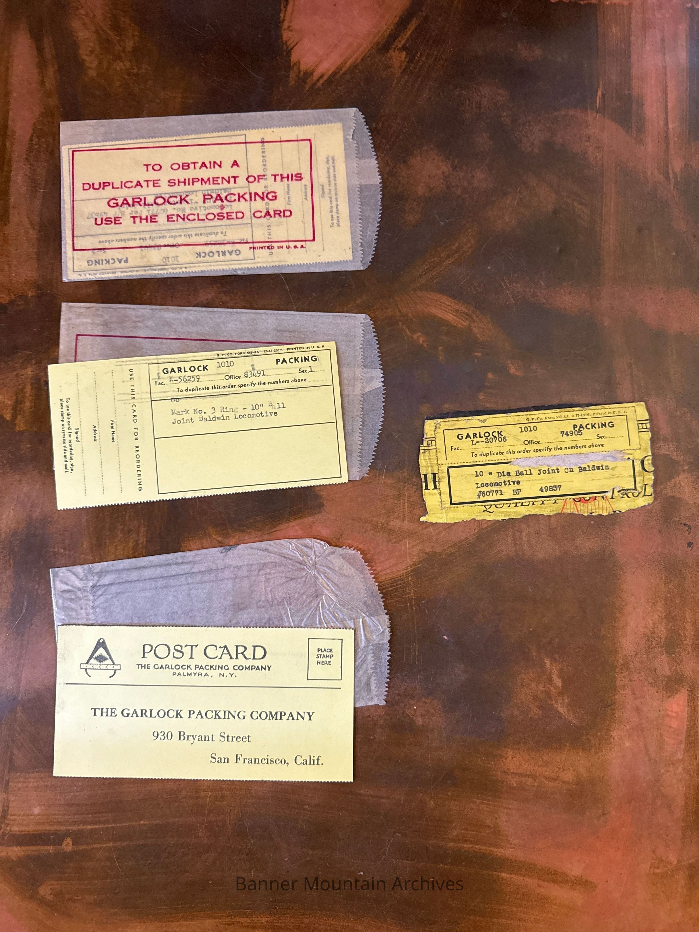 Label from Garlock Packing box for 10” diameter ball joint on Baldwin locomotive no. 60771 BP 49837.Creator