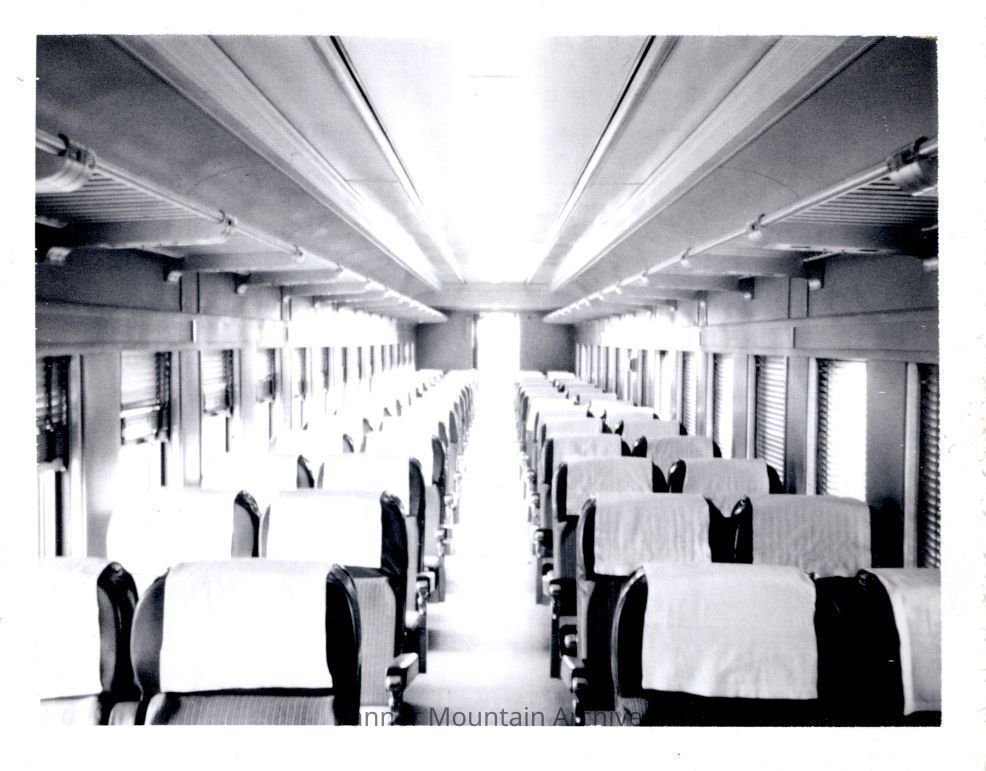 Interior of Chicago, Burlington and Quincy Railroad coach #4520 on train number 30, August 11, 1967.Photograph Details