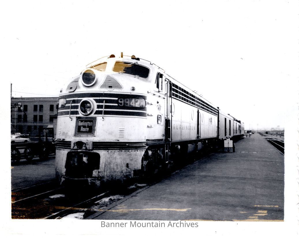 Chicago, Burlington and Quincy Railroad train number 30 led by diesel locomotive #9942 at Billings, Montana, August 11, 1967.