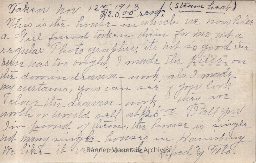 Home of Alfred and Flo Nisley, Harrisburg, PA, November 12, 1913.Photograph Details