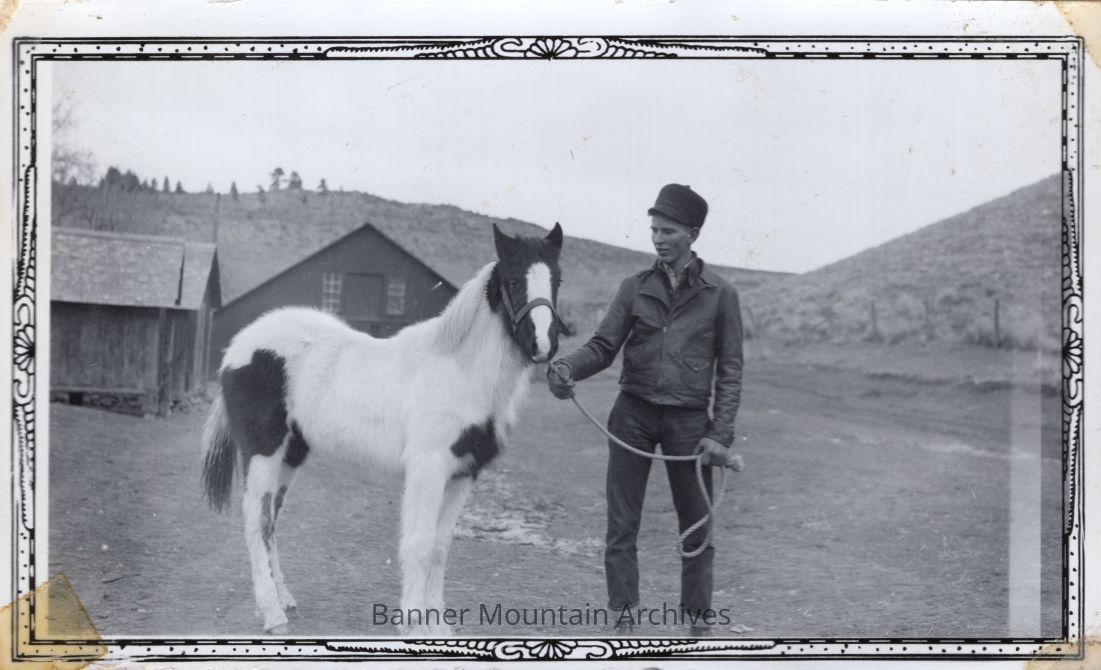 Bryant "Cactus" McCleary with horse, circa late 1930s.Photograph Details