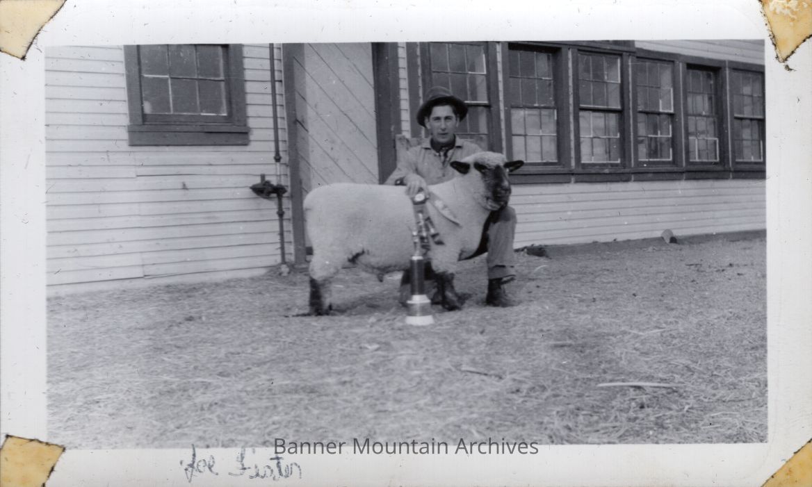 Joe Fister with a sheep and awards, circa 1940s.Photograph Details