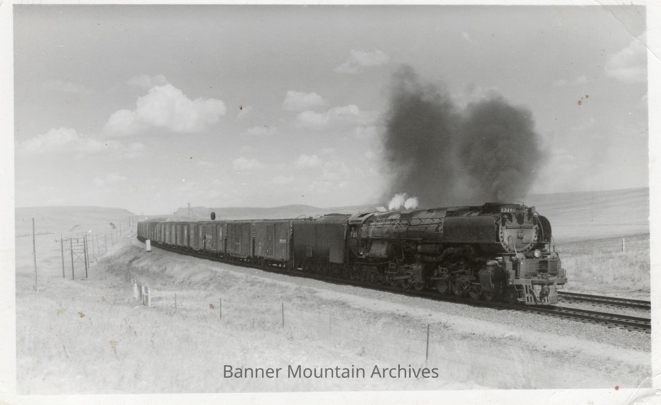 Union Pacific Challenger #3710 leading a freight train East of Cheyenne, WY, July 16, 1959.