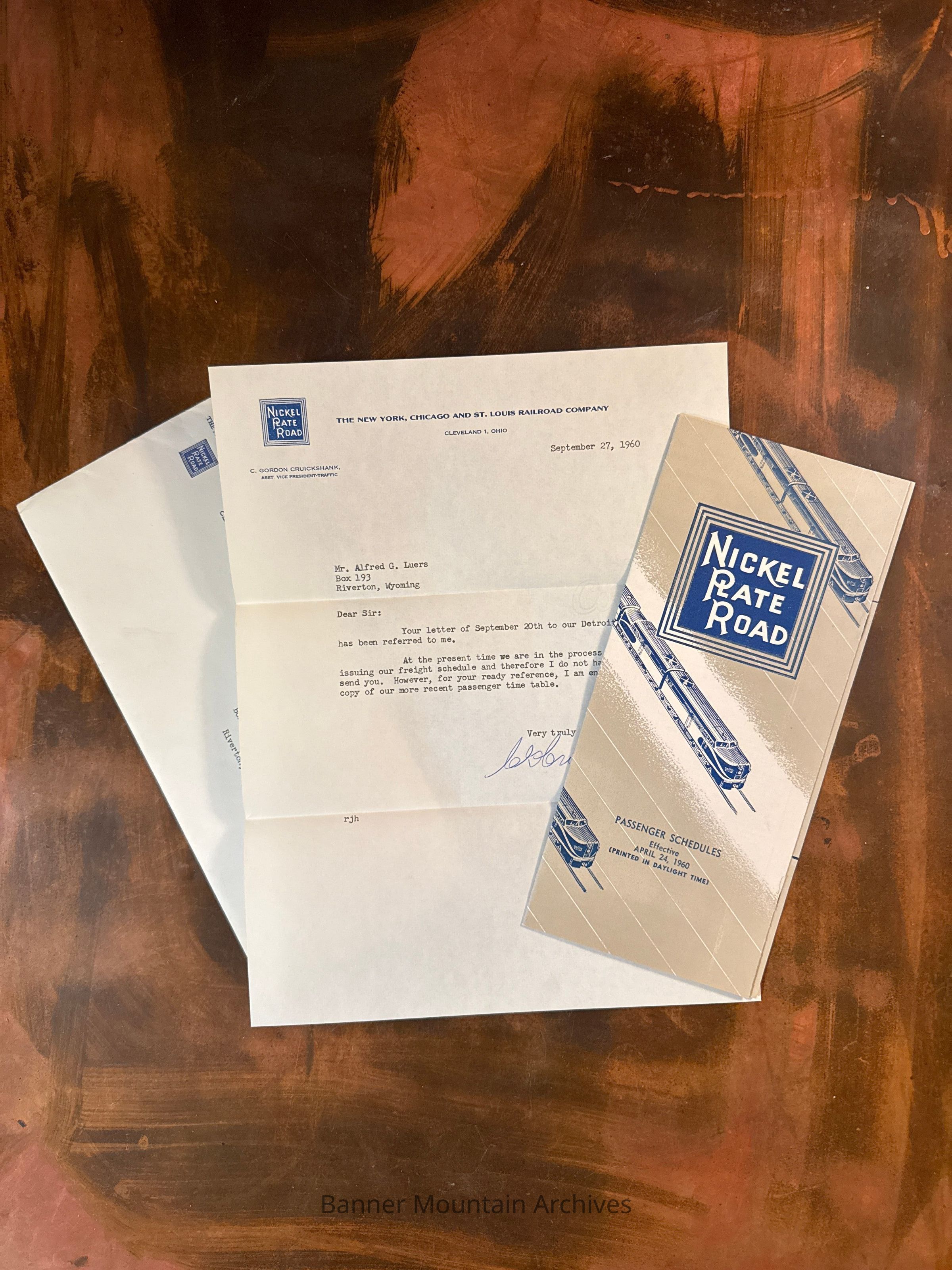 Nickel Plate Road envelope sent to Alfred Luers of Riverton, WY, received October 1, 1960Creator