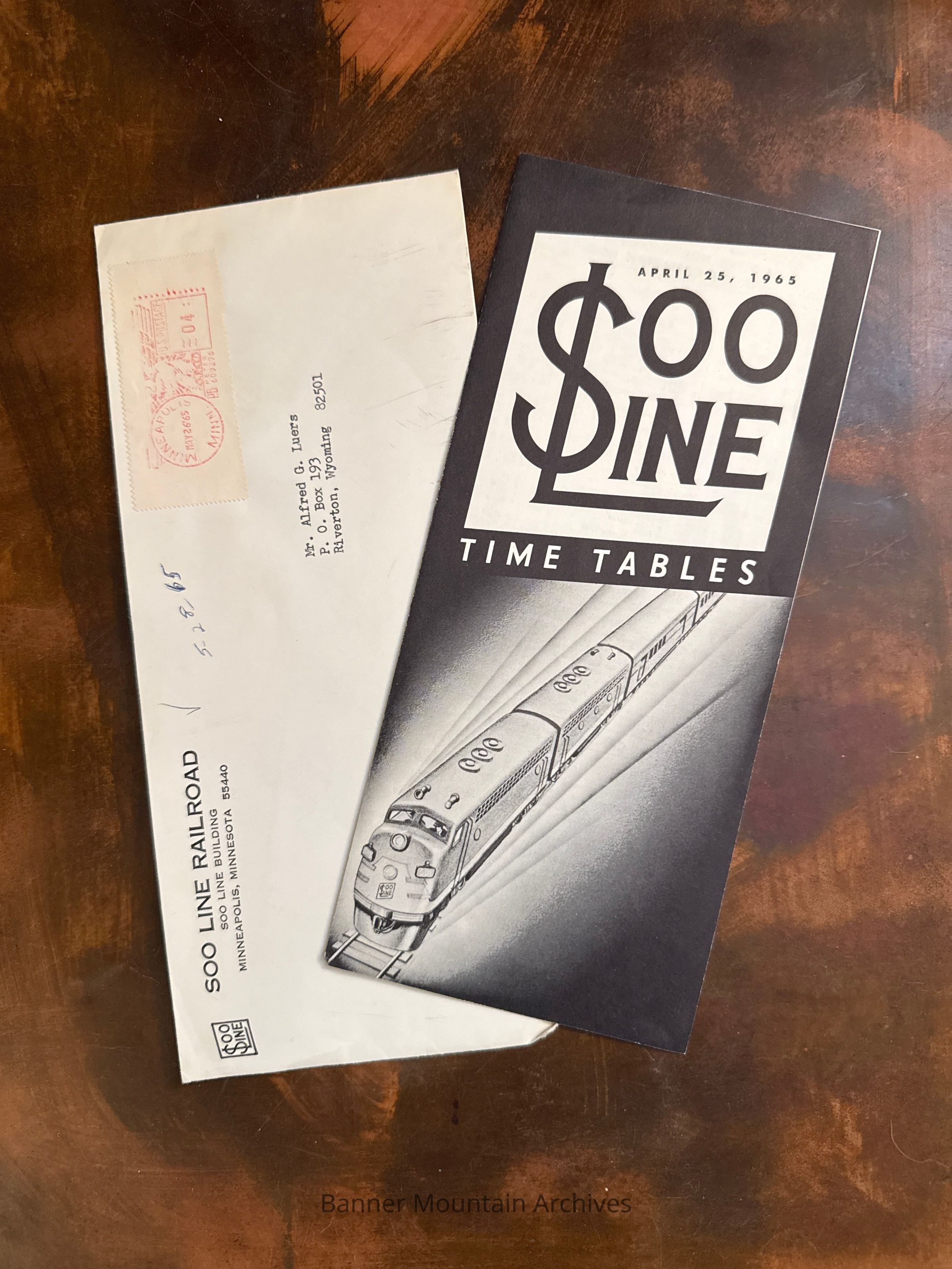 Soo Line Railroad envelope sent to Alfred Luers of Riverton, WY, received May 28, 1965.Creator