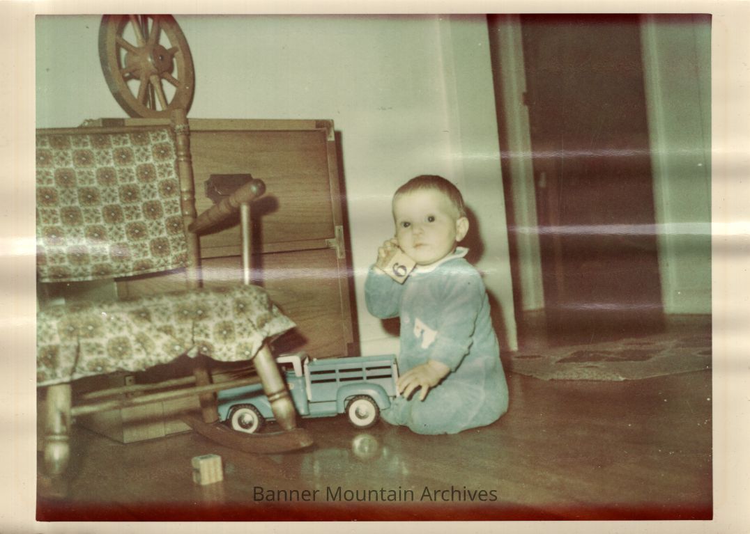 Shelly McCleary playing with toys in the main ranch house, circa 1968.Photograph Details