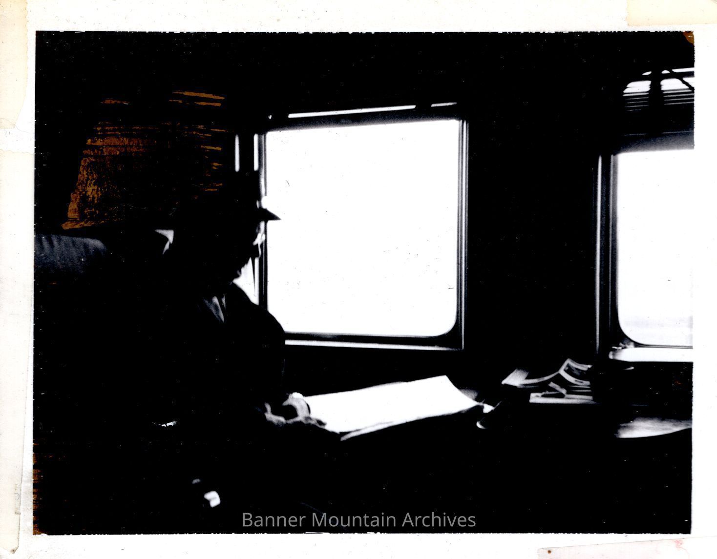 Chicago, Burlington and Quincy Railroad Conductor Edwin L. Arneson in coach #4520 on train number 30, August 11, 1967.Photograph Details