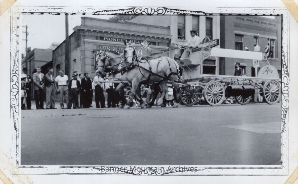 Horse and wagon in the Sheridan Parade, circa late 1930s.