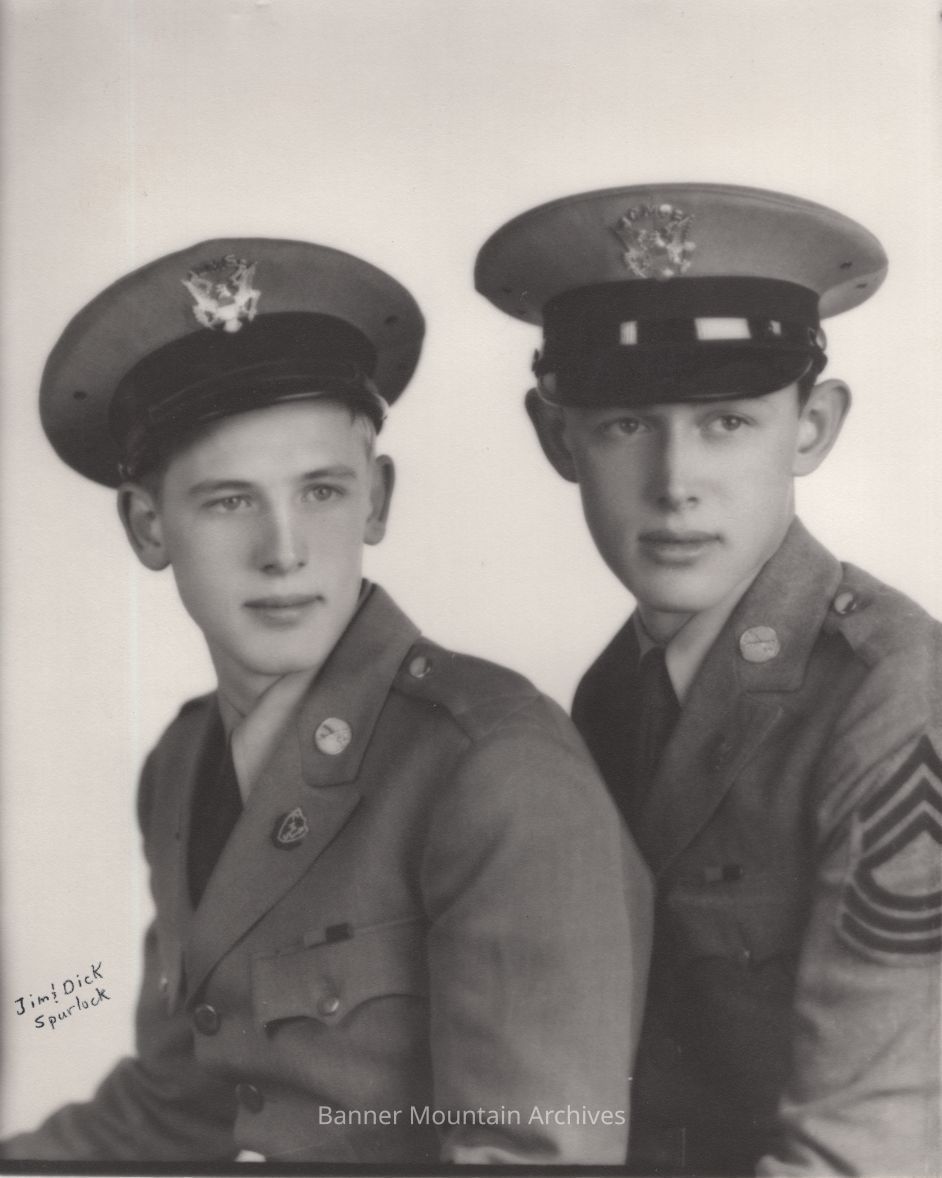 Portrait of James "Jim" and Richard "Dick" Spurlock in Army uniforms, circa 1940s.Photograph Details