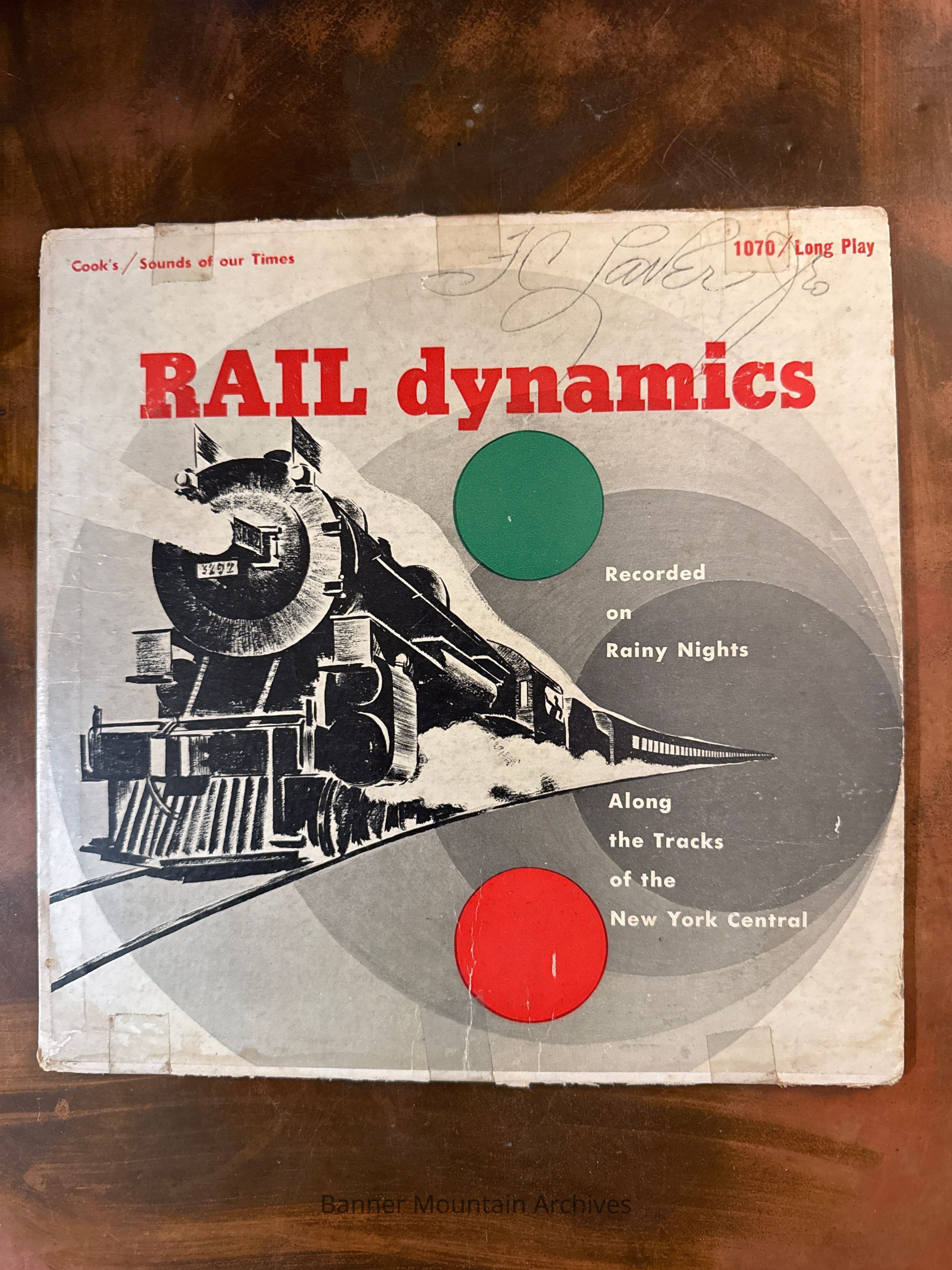 Cook's Sounds of Our Times "Rail Dynamics" recorded on rainy nights along the tracks of the New York Central, Peekskilll, New York, 1950.