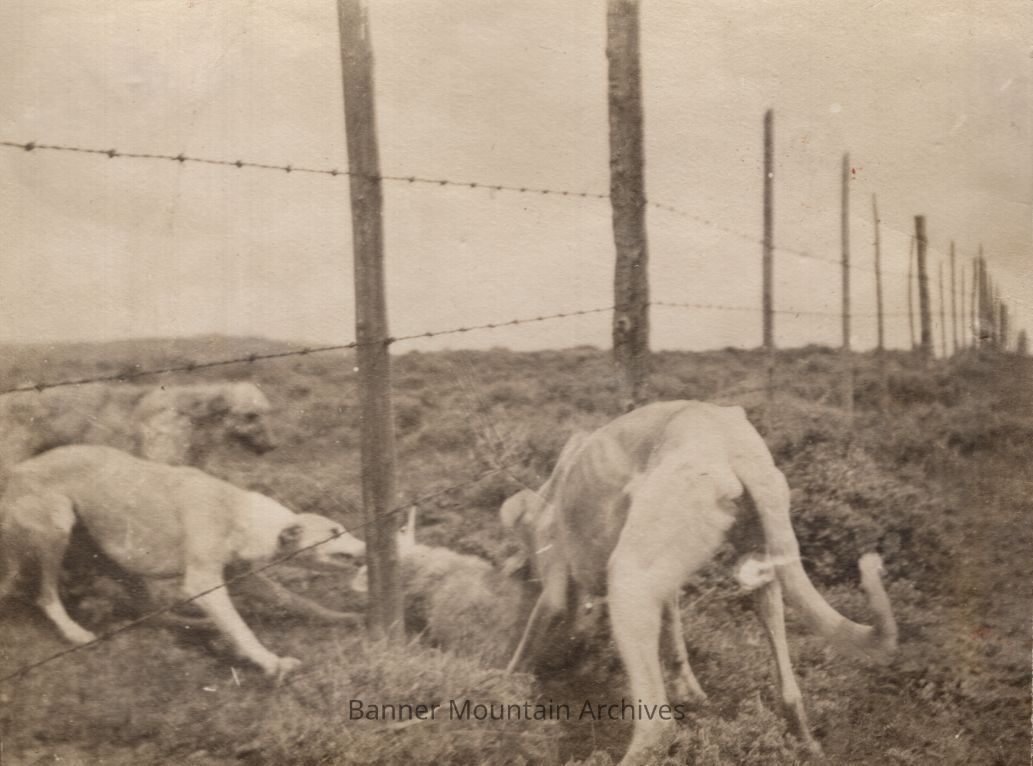Lena McCleary's hunting dogs with a coyote, circa 1930s.