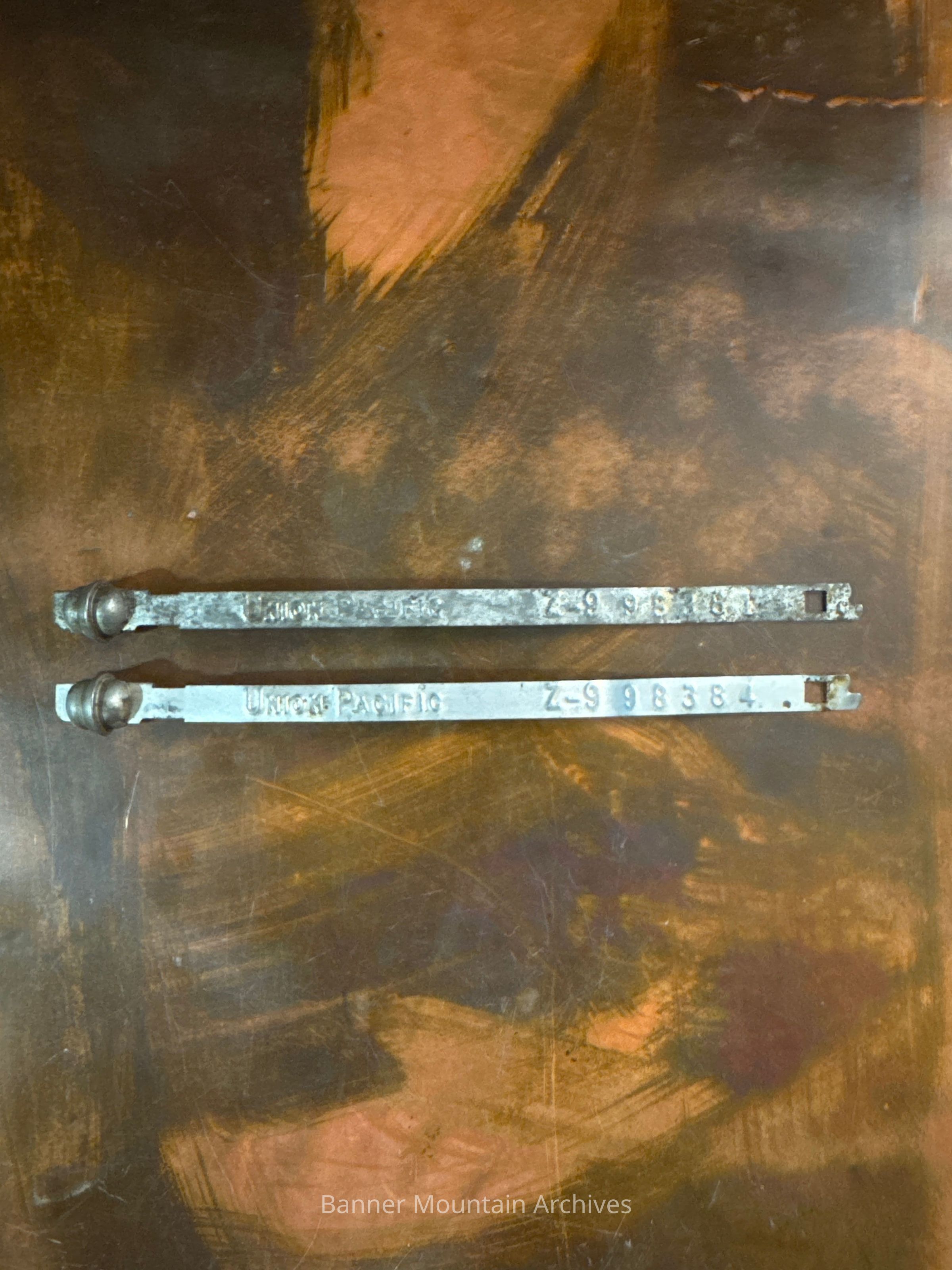 Union Pacific Railroad freight car seals, Z-998384 and Z-998381.Category