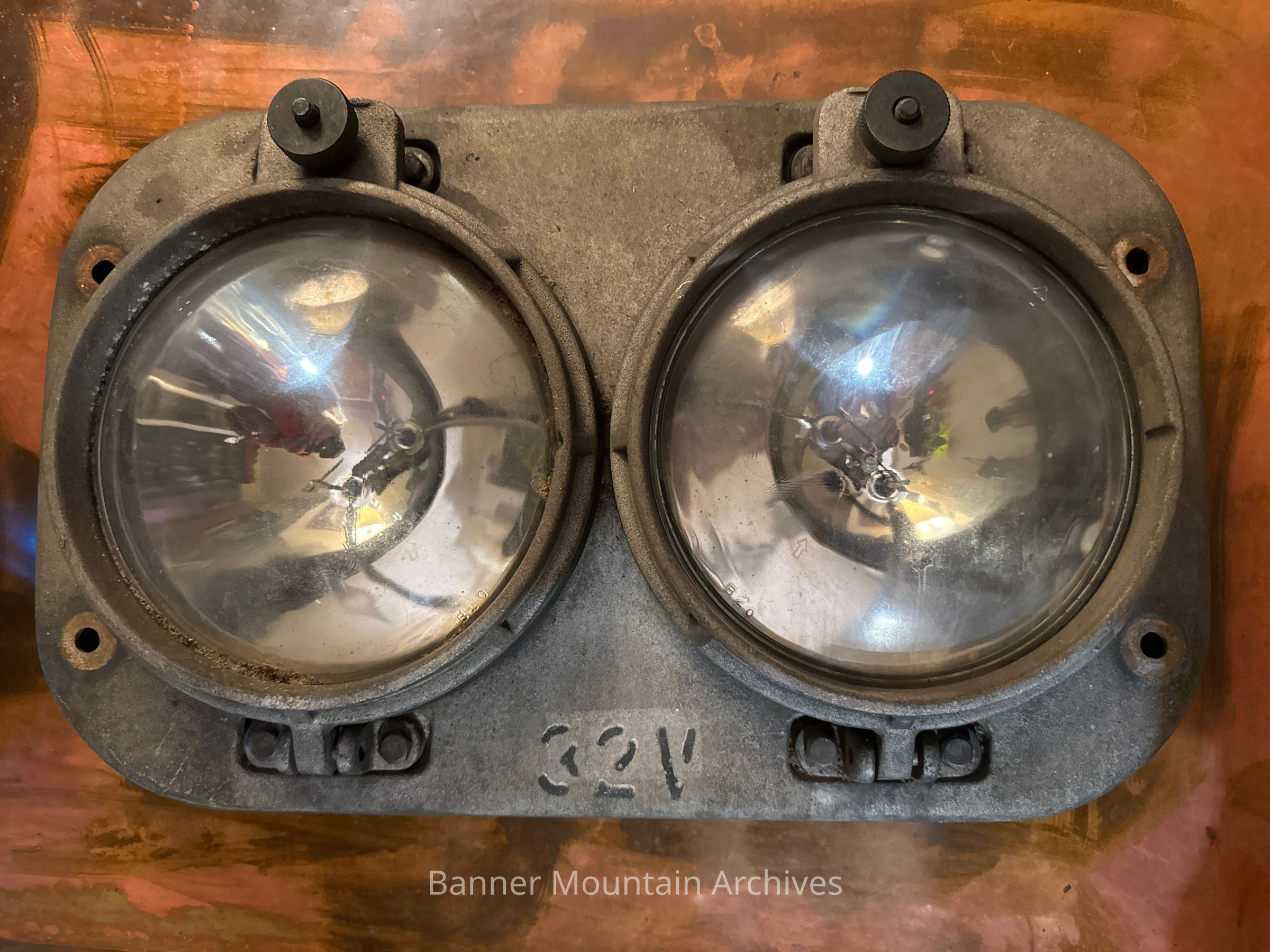 Headlight from a diesel locomotive.