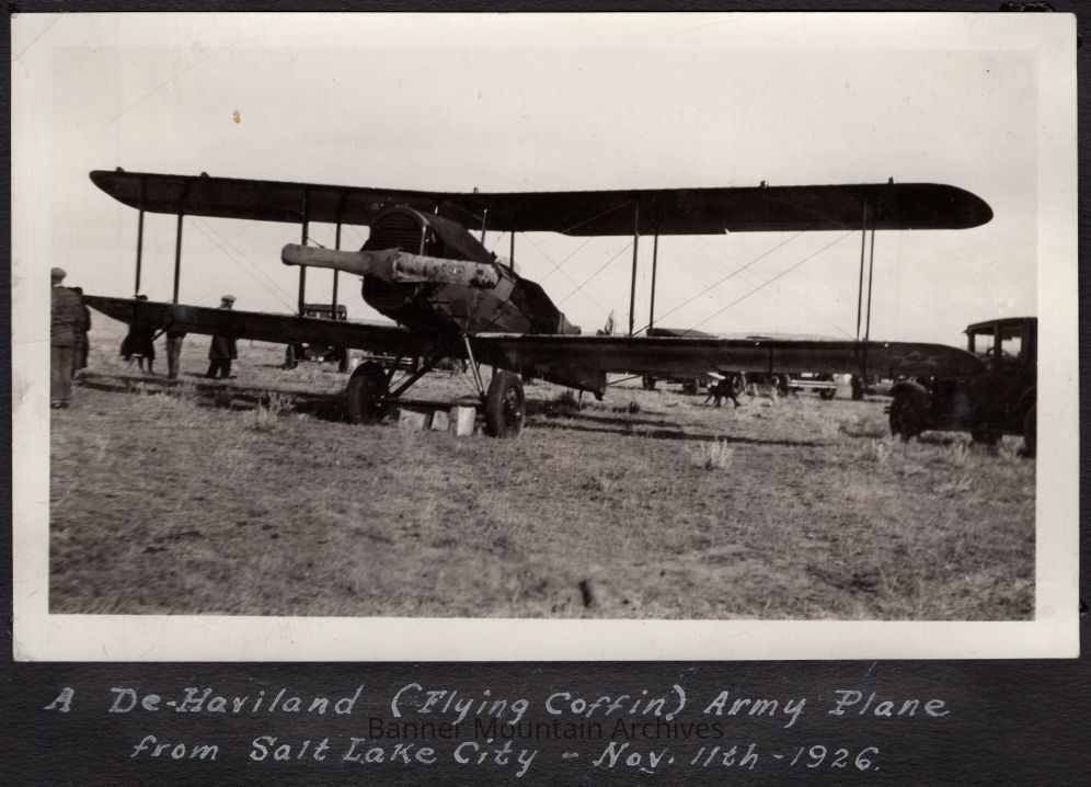 A De-Haviland (Flying Coffin) Army plan from Salt Lake City at Wardwell Field, November 11, 1926.