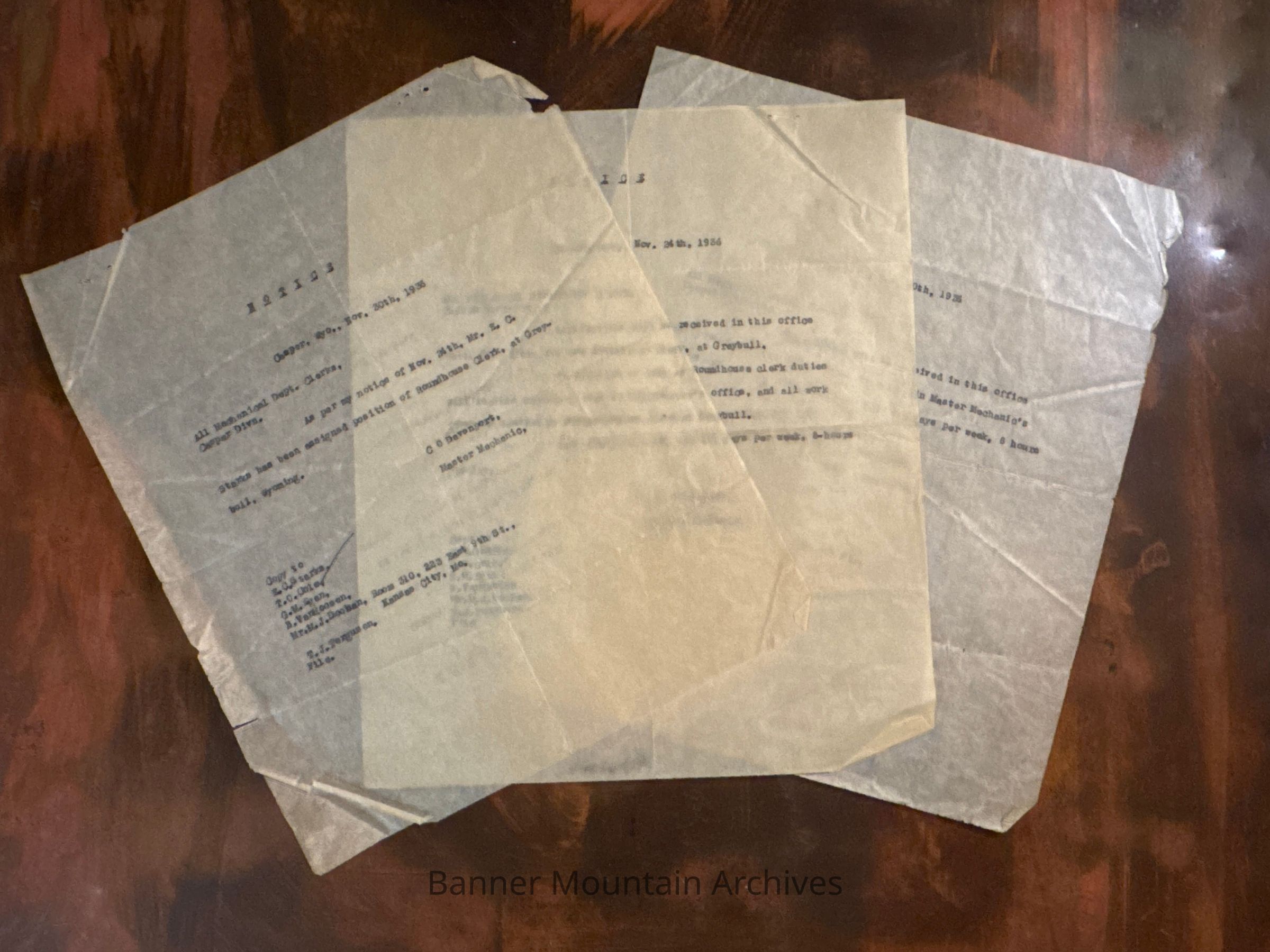 CB&Q notice advising the position of clerk in the Master Mechanic’s office in Casper being assigned to G.M. Egan, December 11, 1936.Creator