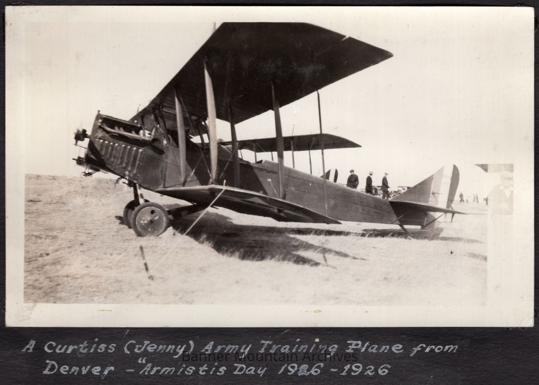 A Curtiss Jenny Army training biplane from Denver, at the Wardwell Field on Armistice Day 1926.Photograph Details